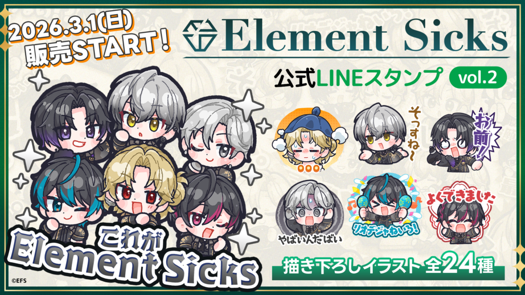 💎Element Sicks LINEスタンプ vol.2 発売決定💎 本日、2026/3/1(日)より EL6公式LINEスタンプ第2弾が登場🎉 日常で使いやすいスタンプ […]