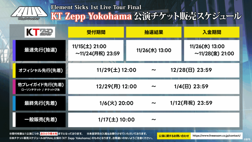 Element Sicks 全国ツアーファイナル 「 KT Zepp Yokohama 」開催決定!